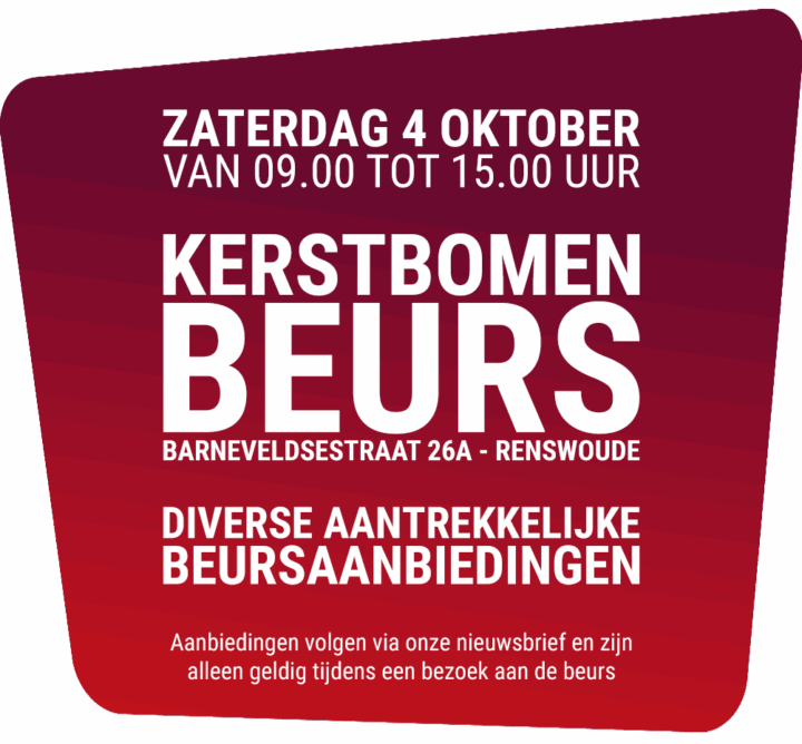 Op zaterdag 4 oktober vindt de Kerstbomenbeurs plaats aan de Barneveldsestraat 26a in Renswoude.